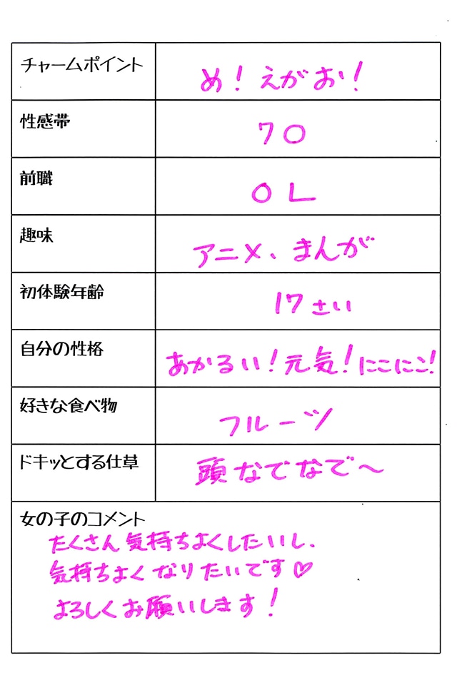 キャストへの応援メッセージを送信してください!送って頂いたメッセージはレビューに掲載させて頂きます。