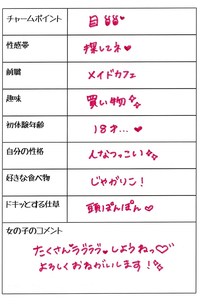 キャストへの応援メッセージを送信してください!送って頂いたメッセージはレビューに掲載させて頂きます。