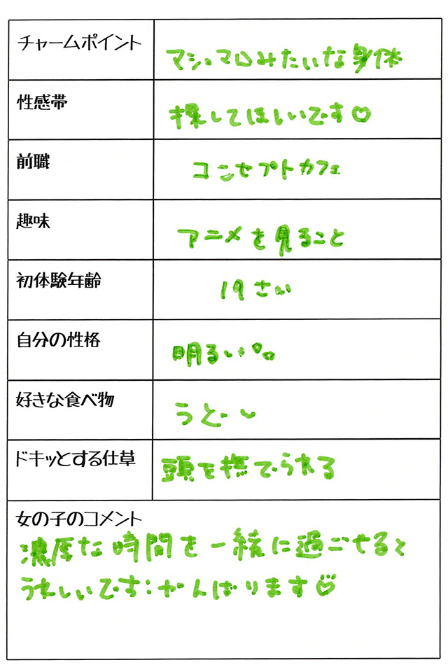 キャストへの応援メッセージを送信してください!送って頂いたメッセージはレビューに掲載させて頂きます。