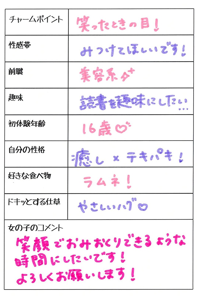 - とっても明るい笑顔がキュートなマイちゃんが入店です♪