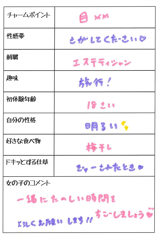 キャストへの応援メッセージを送信してください!送って頂いたメッセージはレビューに掲載させて頂きます。